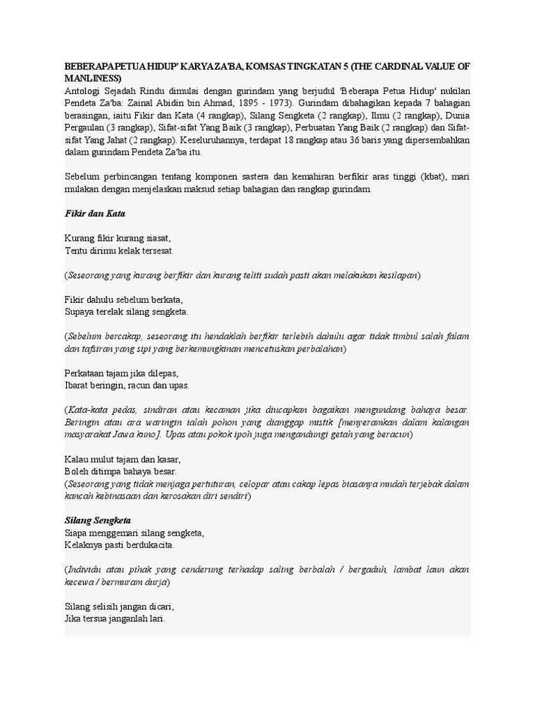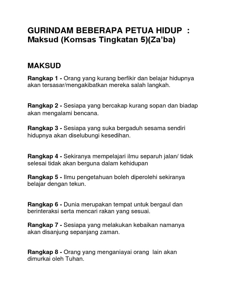 Komsas Tingkatan 5 Docx Gurindam Gurindam Beberapa Petua Hidup Za Ba Maksud Rangkap 1 Rangkap 2 Rangkap 3 Rangkap 4 Rangkap 5 Rangkap 6 Rangkap Course Hero